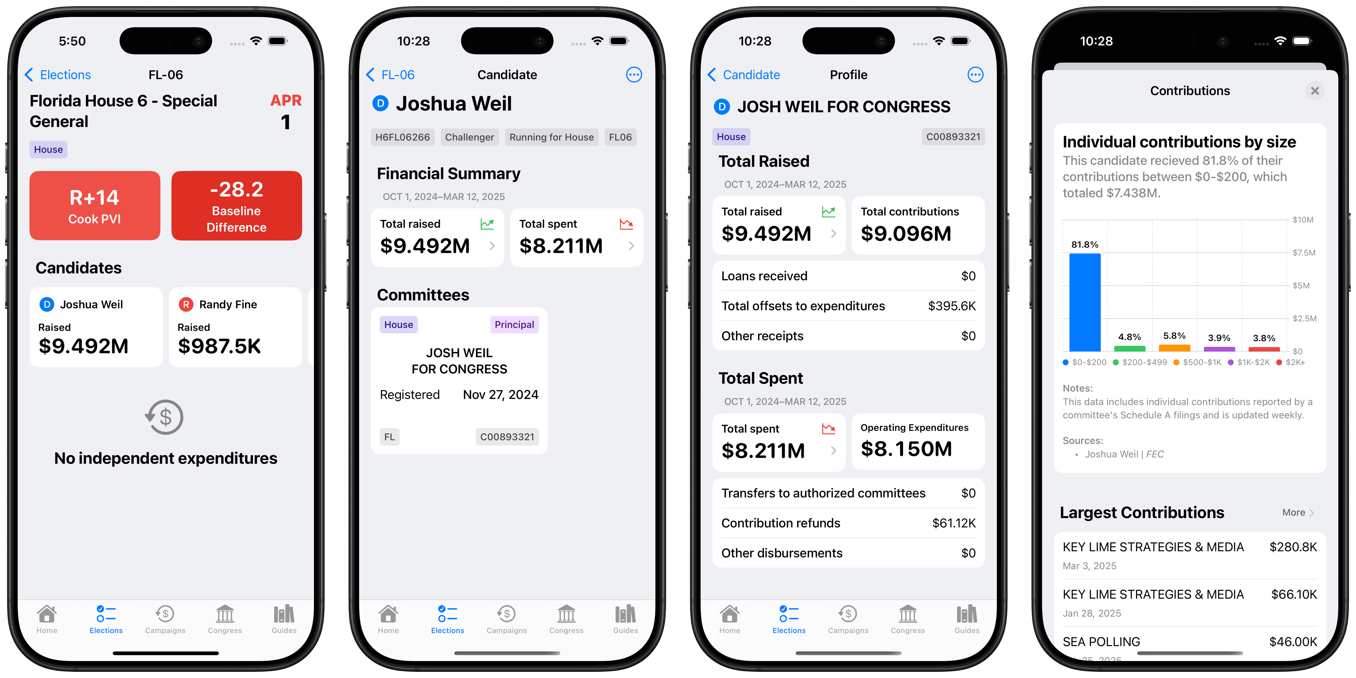 This is the first in a series of posts where I do preliminary campaign finance research on upcoming elections using the app I’m developing, Informed, as well as online resources like FEC.gov and opensecrets.org. My goals are (1) to familiarize readers with how to do basic campaign finance research and (2) to demonstrate the functionality of Informed to improve the app, guide users, identify gaps, and find bugs.